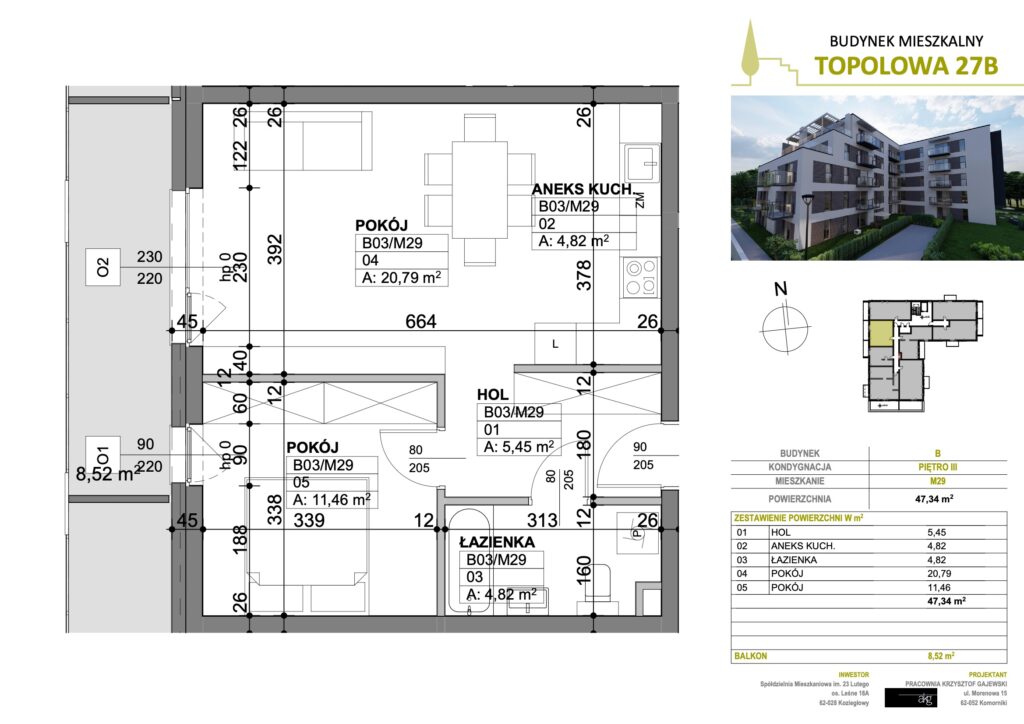 • Powierzchnia: 47,34 m2