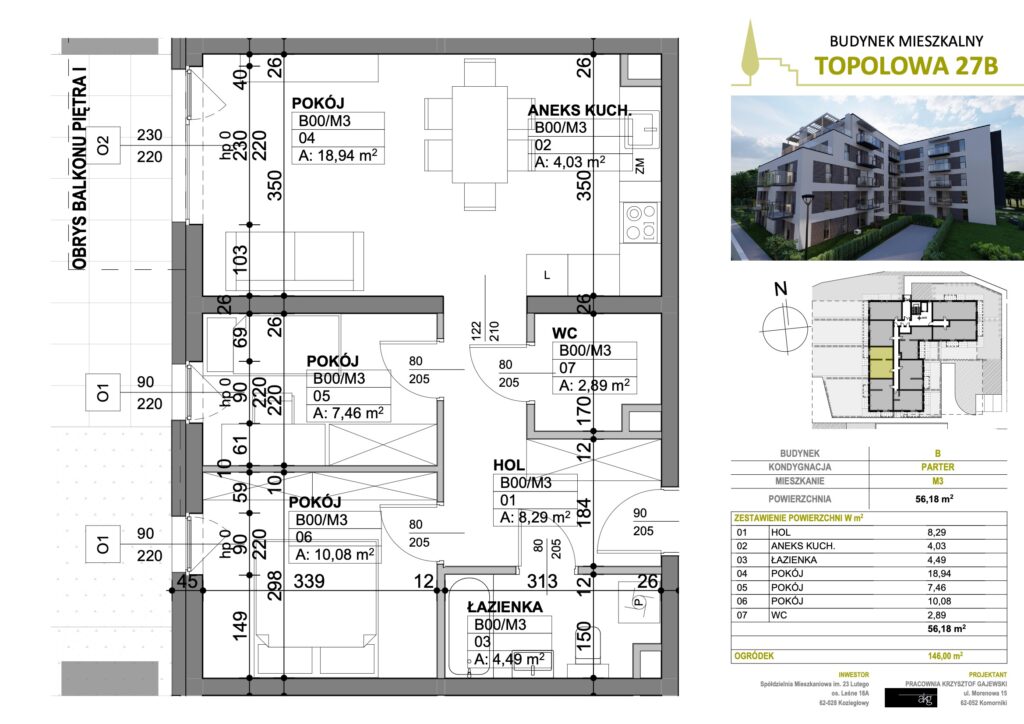 • Powierzchnia: 56,18 m2