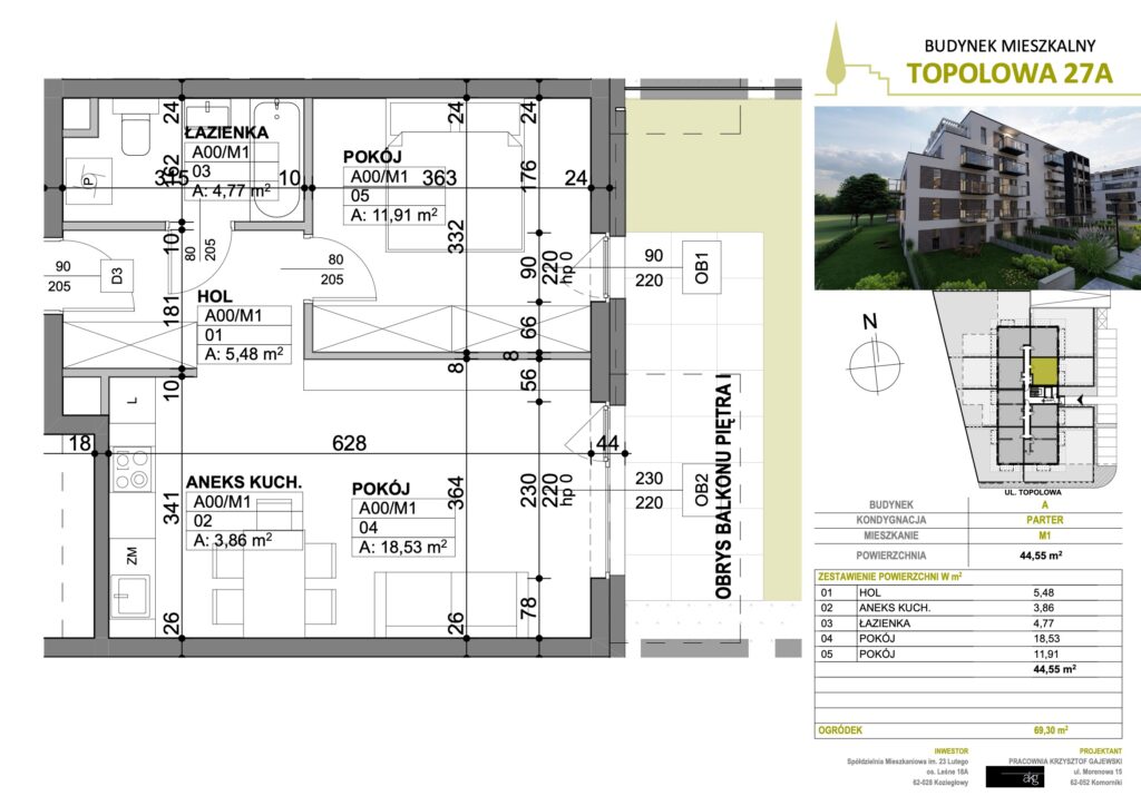 • Powierzchnia: 44,55 m2