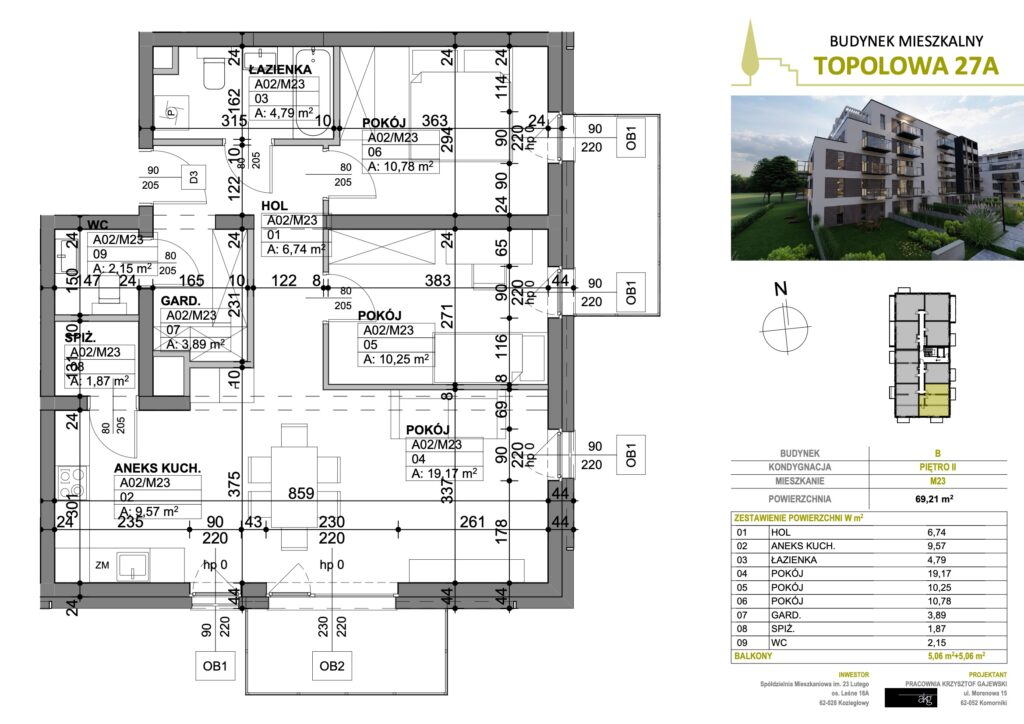 • Powierzchnia: 69,21 m2