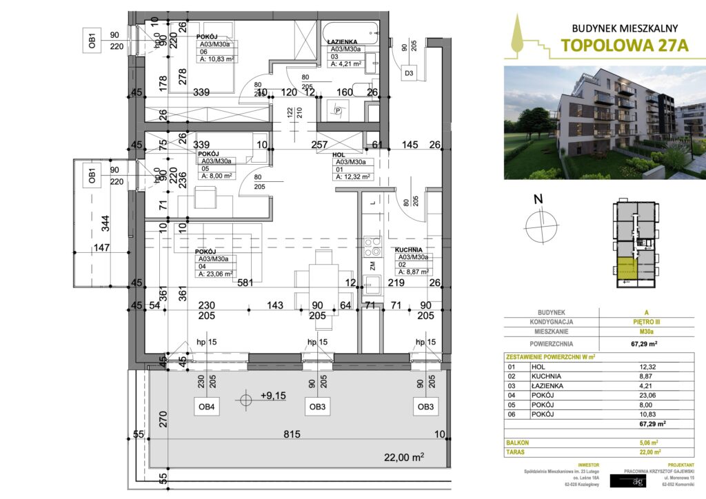 • Powierzchnia: 67,29 m2